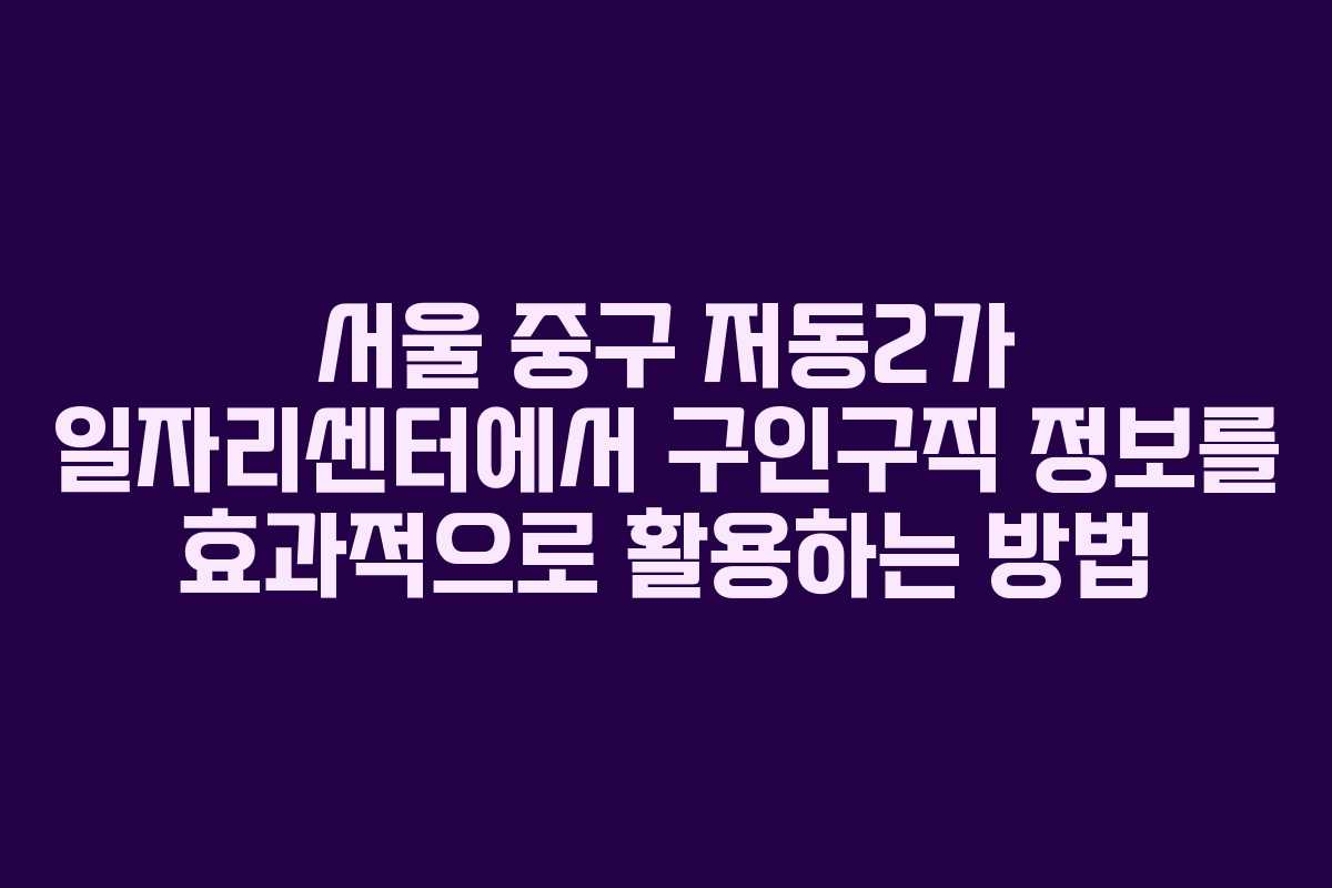 서울 중구 저동2가 일자리센터에서 구인구직 정보를 효과적으로 활용하는 방법