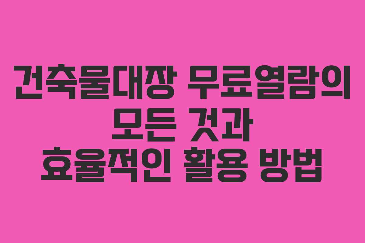 건축물대장은 부동산 거래 및 다양한 민원 처리에 필수적인 정보입니다. 본 문서에서는 건축물대장을 무료로 열람하는 방법과 관련된 절차를 안내합니다. 이 정보를 통해 건축물에 대한 정확한 이해와 활용이 가능해질 것입니다.