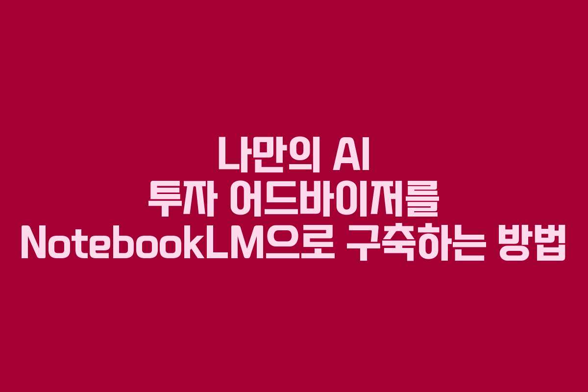 나만의 AI 투자 어드바이저를 NotebookLM으로 구축하는 방법