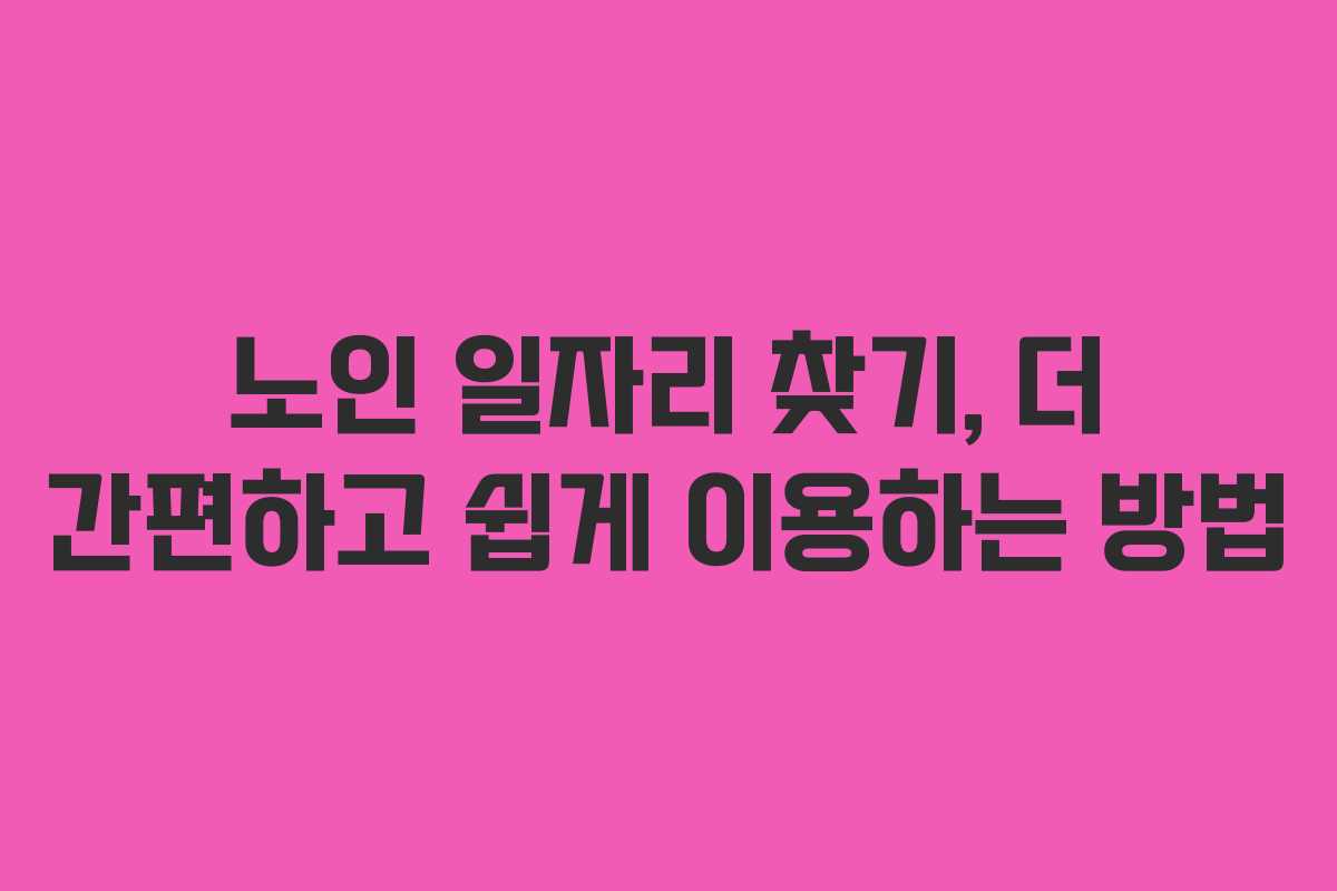 노인 일자리에 대한 정보는 점차 중요해지고 있으며, 이를 쉽게 찾을 수 있는 방법에 대한 관심이 높아지고 있다. 어르신들을 위한 맞춤형 일자리를 온라인에서 손쉽게 검색하고 지원할 수 있는 경로는 여러 가지가 있다. 이를 통해 어르신들은 보다 활기찬 삶을 누릴 수 있는 기회를 얻을 수 있다.
