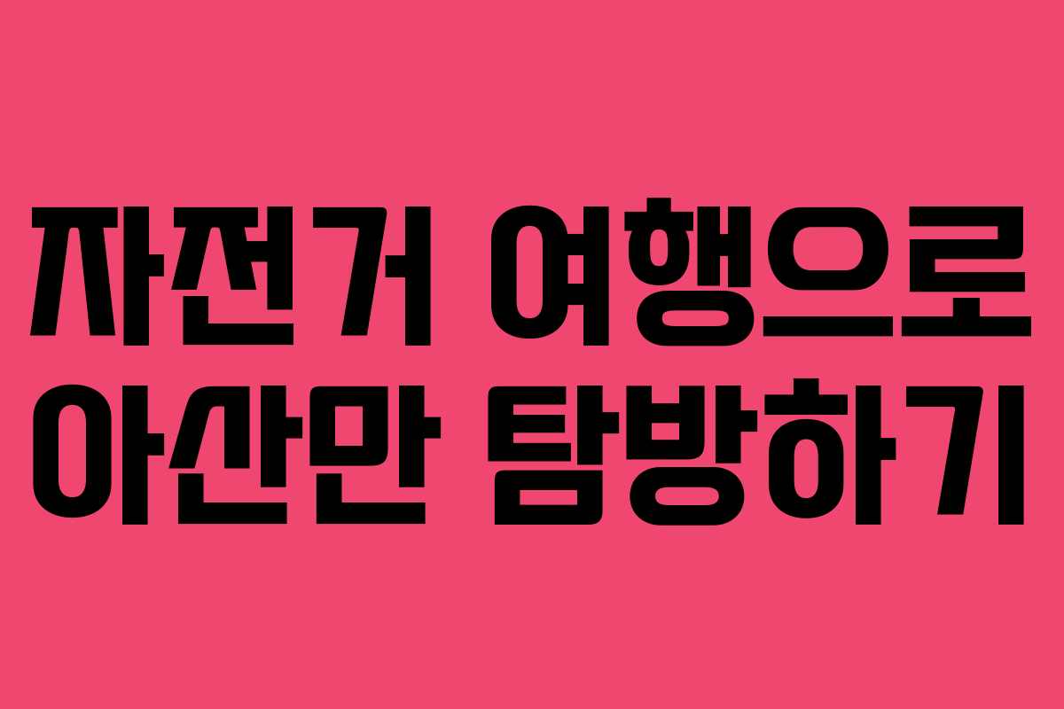 자전거를 타고 새로운 여행지를 찾는 것은 신선한 경험을 제공합니다. 아산만은 자전거 여행의 매력을 느끼기에 적합한 장소로, 이곳을 방문하는 것이 흥미로운 도전이 될 것입니다. 자전거를 타고 갈 수 있는 경로와 주의사항을 살펴보며, 아산만으로의 자전거 여행을 계획해보세요.