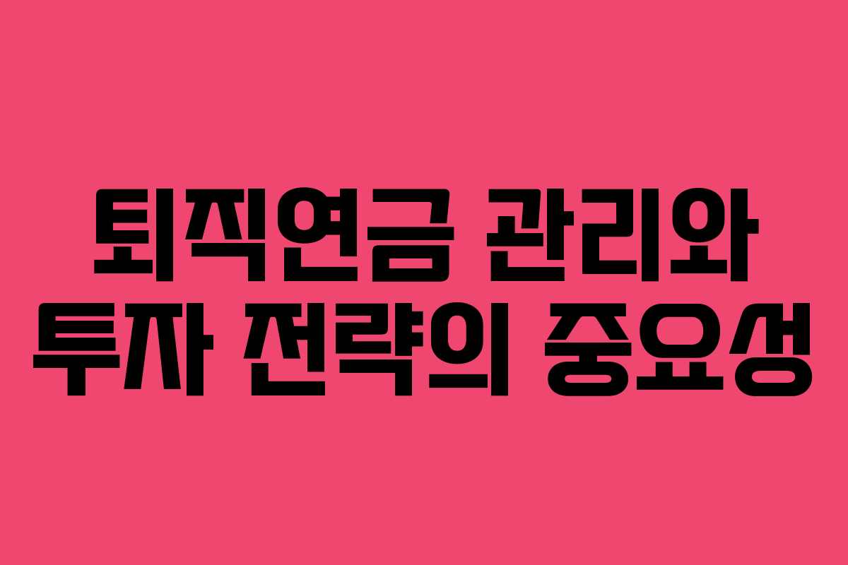 퇴직연금은 정기적으로 상품을 점검하고, 투자 성향에 맞는 상품으로 변경하는 것이 중요합니다. 또한, 투자 성과를 주기적으로 확인하여 필요시 전략을 수정해야 합니다.