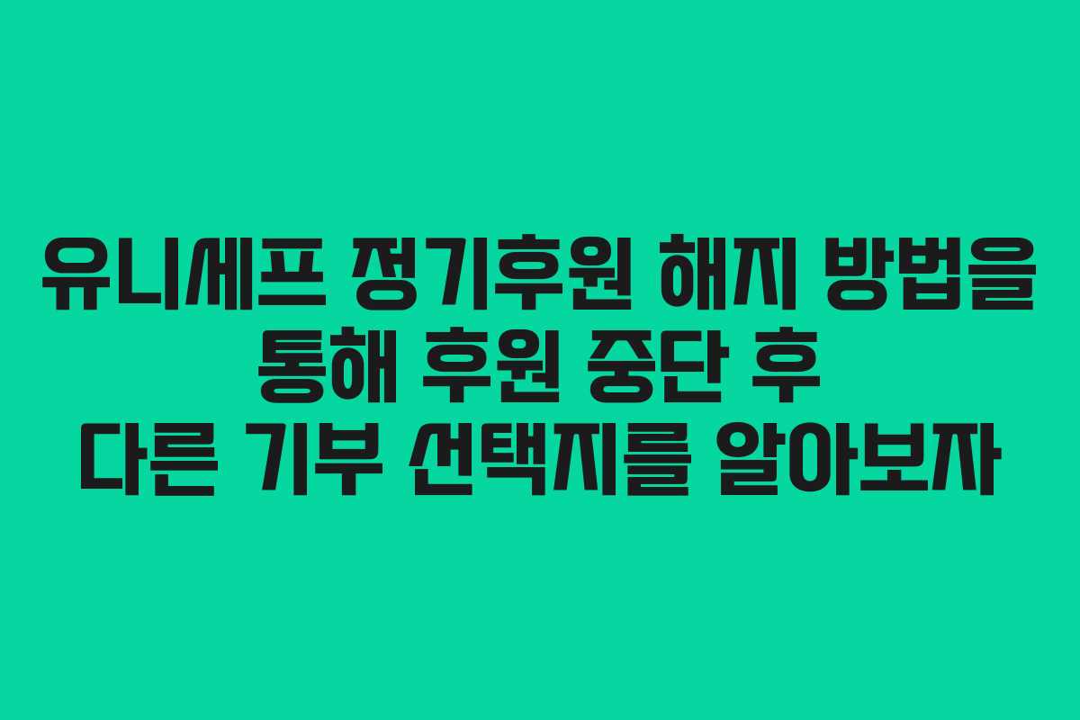 유니세프의 정기후원 해지는 여러 가지 방법으로 진행할 수 있으며, 각 방법은 상황에 따라 다소 차이가 있습니다. 후원 중단을 고민하는 사람들에게 유용한 정보를 제공하고자 합니다. 정기후원 해지 후에도 다른 기부 단체를 고려하는 것이 중요할 수 있습니다.