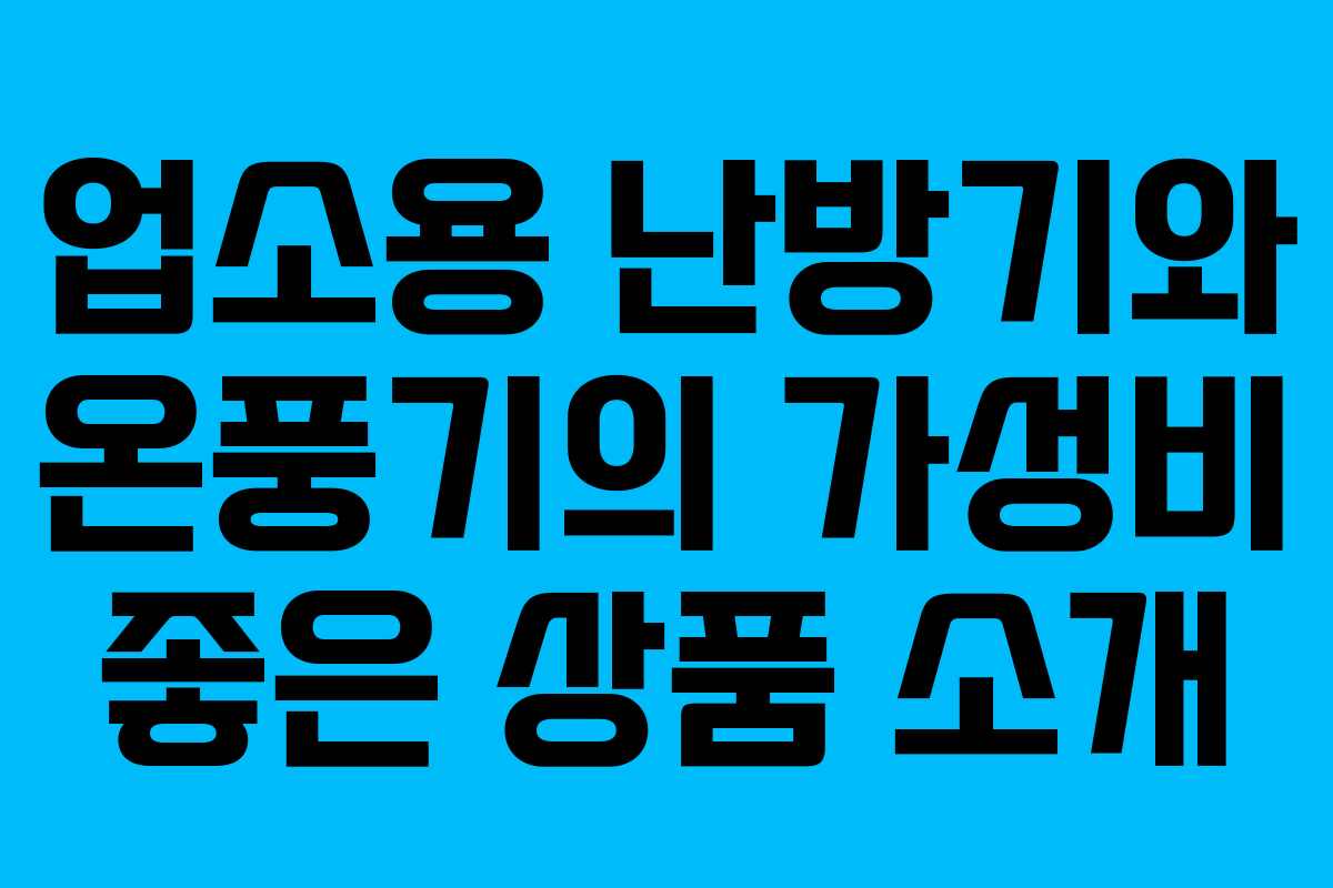 업소용 난방기와 온풍기는 겨울철 따뜻한 실내 환경을 만드는 데 필수적인 요소이다. 특히 상업 공간이나 공공장소에서 고객과 직원의 편안함을 위해 적절한 난방 장비를 선택하는 것이 중요하다. 이번 글에서는 2025년 5월 25일 기준으로 가성비가 뛰어난 업소용 온풍기와 난방기 베스트 10을 소개하고, 각 제품의 특징과 장점을 살펴보겠다.