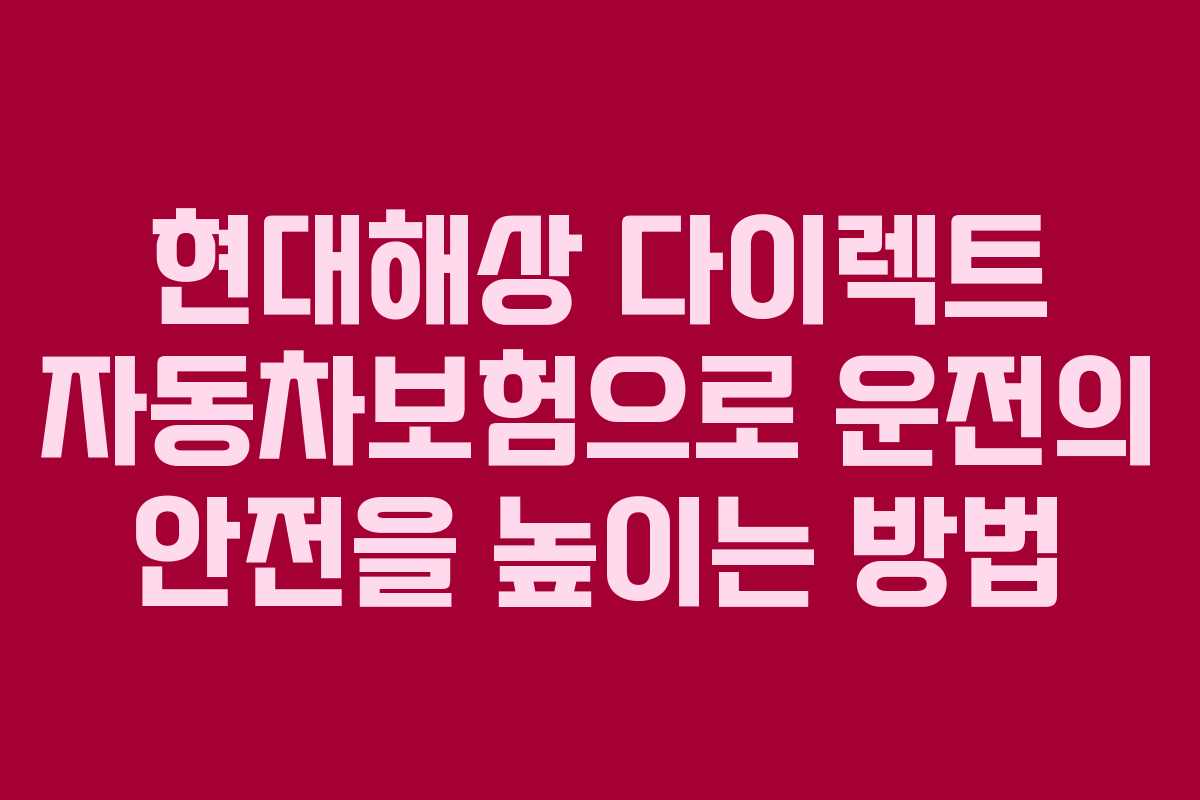 현대해상 다이렉트 자동차보험은 운전자가 필요로 하는 다양한 보장을 제공하여 안전하게 운전할 수 있도록 돕습니다. 디지털 기술을 활용한 간편한 가입 절차와 다양한 특약 옵션은 고객들에게 큰 만족을 주고 있습니다. 이 보험의 특성과 가입 방법을 자세히 살펴보겠습니다.