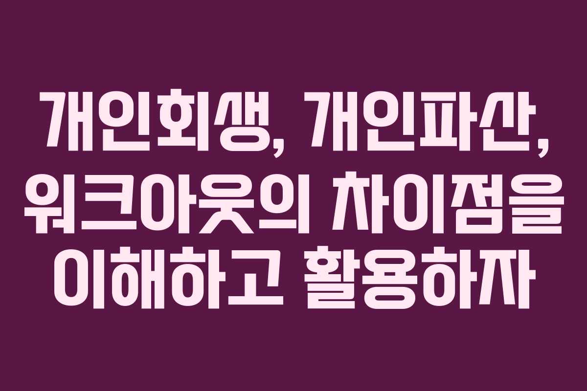 경제적 어려움에 처한 상황에서 개인회생, 개인파산, 워크아웃과 같은 제도를 이해하는 것은 매우 중요하다. 이러한 제도들은 각기 다른 조건과 목적을 가지고 있으며, 개인의 상황에 따라 적합한 선택이 달라질 수 있다. 이 글에서는 각 제도의 특징과 장단점을 살펴보며, 필요한 경우 적절한 선택을 할 수 있도록 도와줄 정보를 제공하겠다.