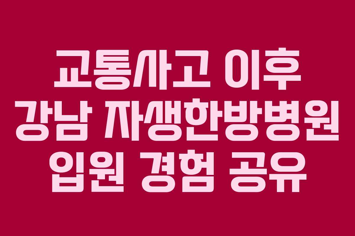 교통사고 이후 강남 자생한방병원 입원 경험 공유