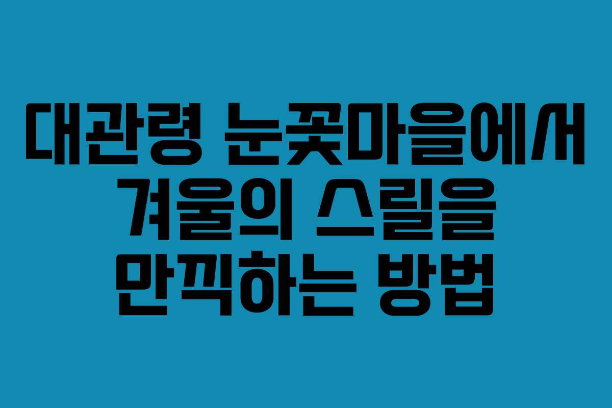 이 체크리스트를 통해 보다 나은 경험을 할 수 있다. 대관령의 겨울을 만끽하며 눈썰매를 즐기는 것은 잊지 못할 추억이 될 것이다.