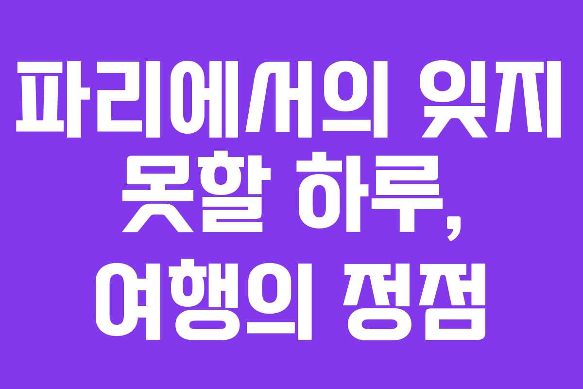 여행의 끝은 새로운 시작을 의미한다. 파리에서의 하루를 통해 많은 것을 느끼고 배웠으며, 이 순간을 잊지 않을 것이다. 이제는 돌아갈 시간이 다가오지만, 이곳에서의 기억은 언제까지나 나와 함께할 것이다. 파리라는 도시에서의 특별한 하루는 나의 인생에 깊은 흔적을 남길 것이다.
