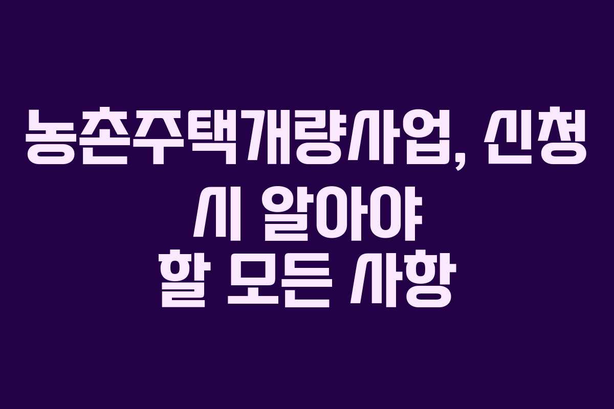 농촌주택개량사업, 신청 시 알아야 할 모든 사항