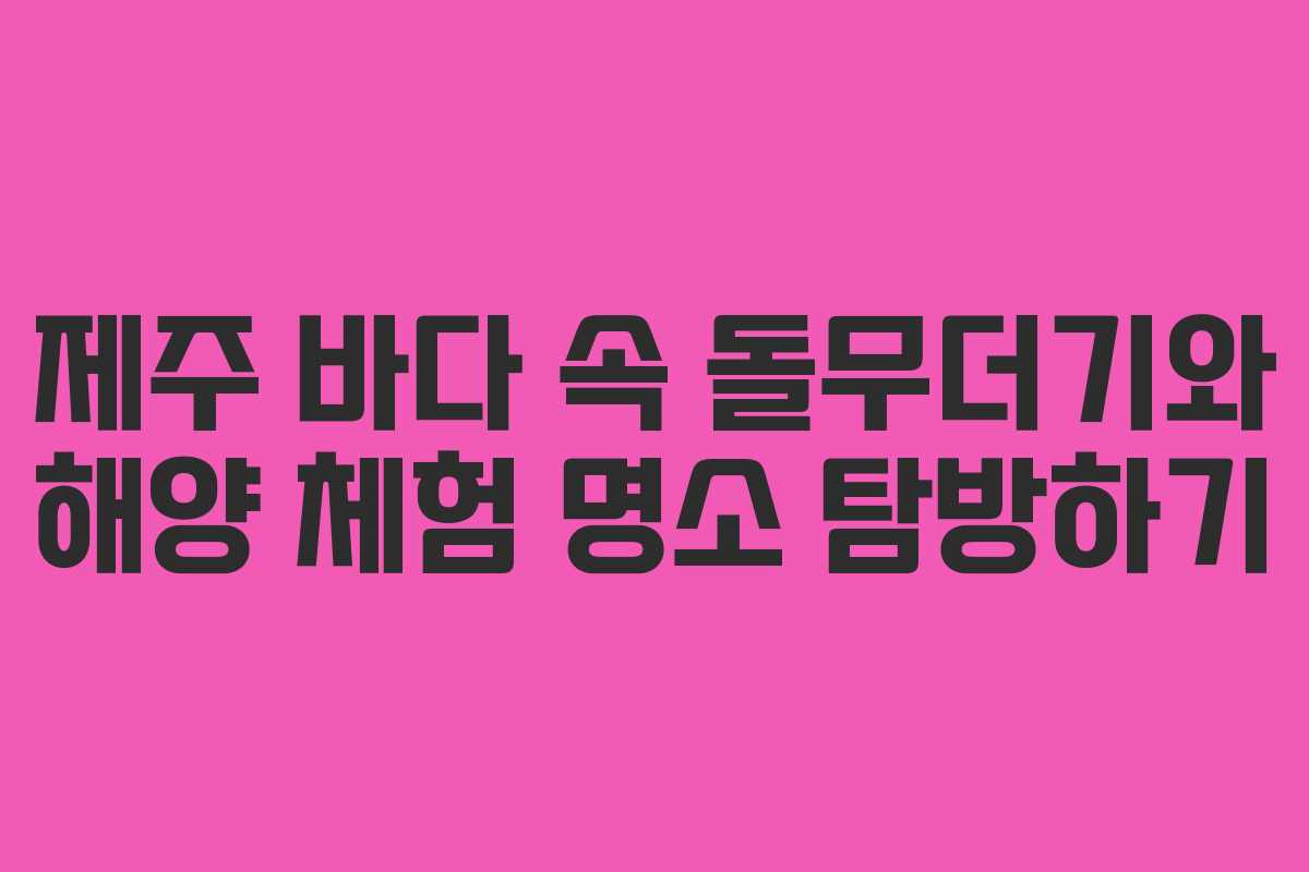 2026년 1월 28일 방송된 SBS 생방송투데이에서 제주도 바다의 신비로운 돌무더기가 소개되며 많은 사람들의 관심을 끌었습니다. 이 지역은 독특한 수중 지형과 인공 구조물이 어우러져 있으며, 제주 조천읍 함덕 근처에서 다양한 해양 레포츠를 즐길 수 있는 장소로 알려져 있습니다. 이 글에서는 해당 명소에 대한 정보와 방문 시 유의사항을 정리해 드립니다.