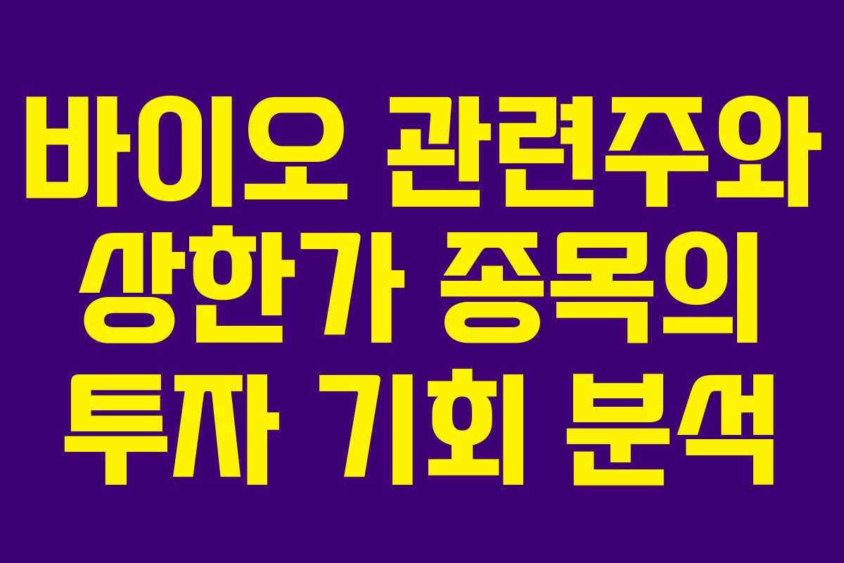 바이오 관련주는 최근 투자자들 사이에서 큰 주목을 받고 있다. 시장의 흐름과 함께 급등하는 종목들이 많아지면서, 투자자들은 이러한 급등 종목을 주의 깊게 살펴보아야 한다. 본 문서에서는 바이오 관련주와 함께 최근 상한가를 기록한 급등 종목들을 분석하여 투자 기회를 모색해보고자 한다.