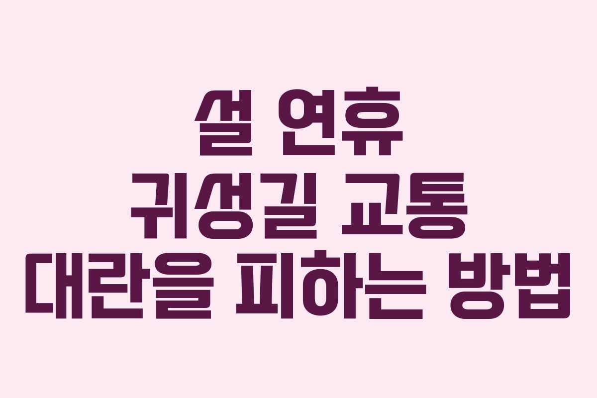 설 연휴 귀성길 교통 대란을 피하는 방법