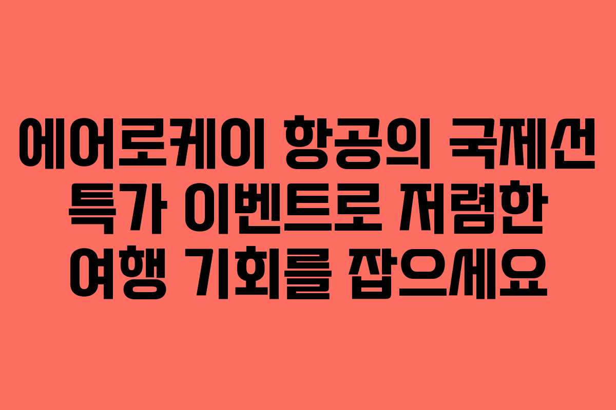 특가 항공권은 여행 비용을 절감할 수 있는 좋은 기회입니다. 에어로케이의 이벤트를 통해 저렴하게 여행을 계획해보시기 바랍니다.