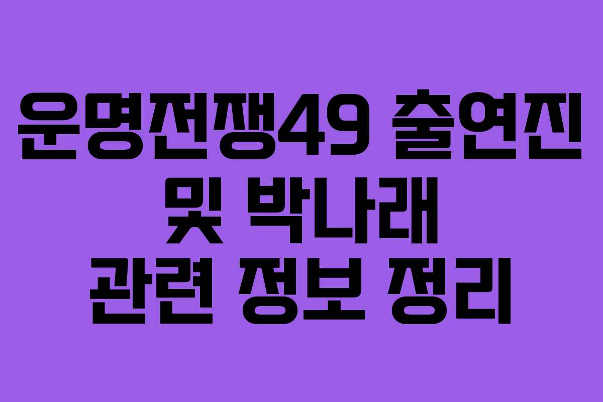 디즈니 플러스의 예능 프로그램인 운명전쟁49는 출연진에 대한 많은 관심을 받고 있으며, 특히 박나래의 출연 여부에 대한 논란이 커다란 화제를 모으고 있다. 이 프로그램은 다양한 운명술사들이 펼치는 서바이벌 형식의 프로그램으로, 많은 이들이 기대감을 가지고 시청하고 있다. 이번 기회에 출연진에 대한 정보를 정리해 보겠다.