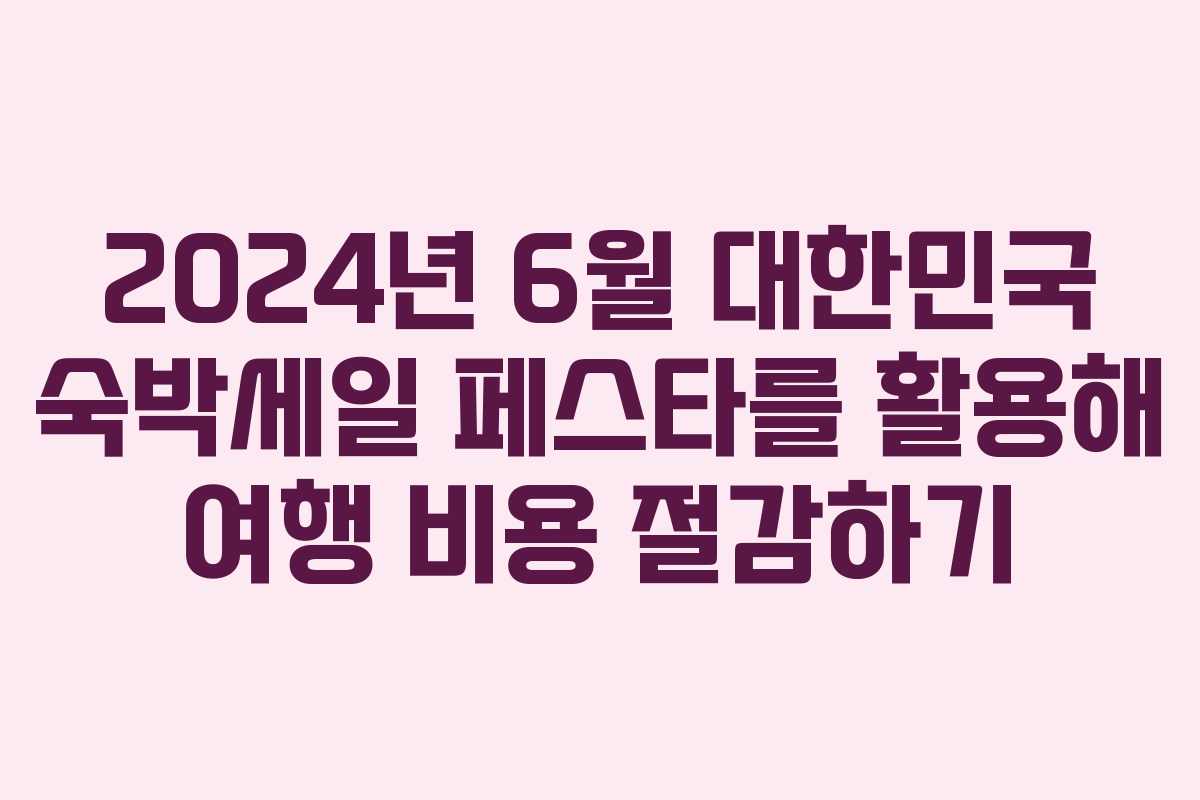 2024년 6월 대한민국 숙박세일 페스타를 활용해 여행 비용 절감하기