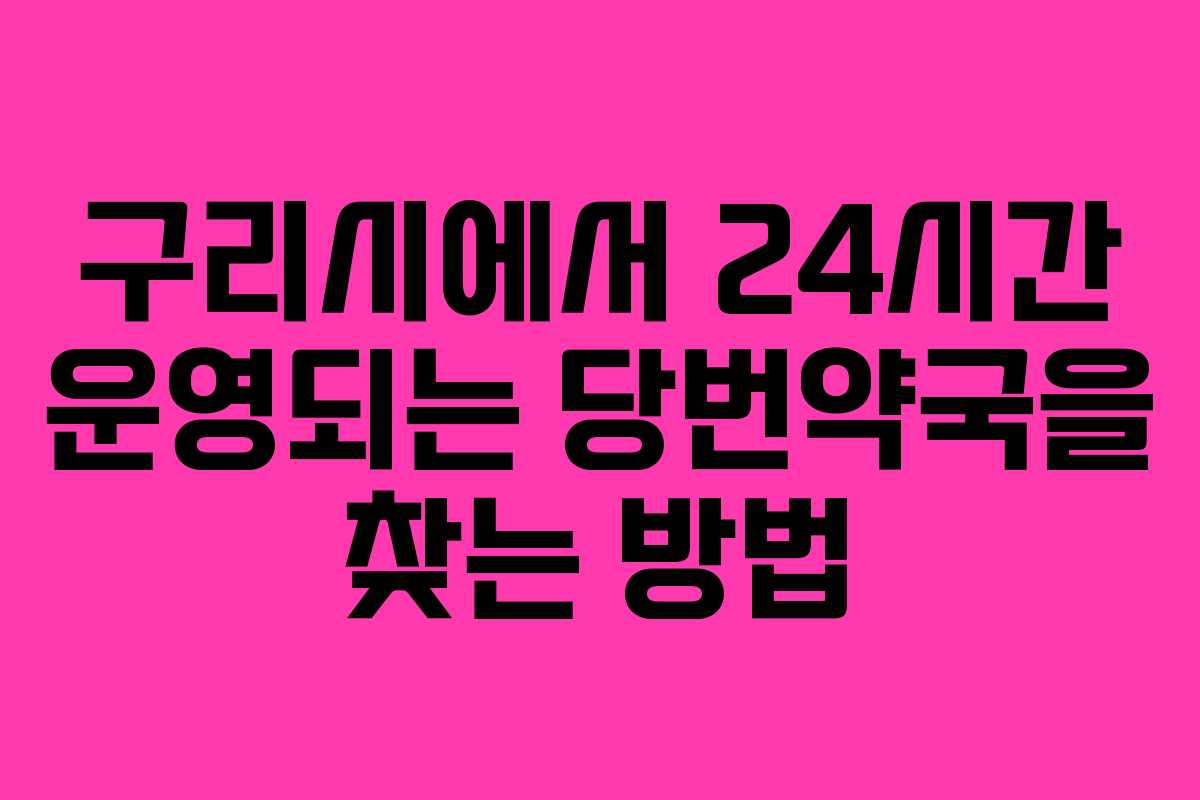 구리시는 심야 및 주말에도 운영되는 다양한 약국이 있다. 이러한 약국들은 긴급한 상황에서 신속하게 약을 구매할 수 있는 장소로 부각되고 있다. 특히, 주말이나 공휴일에 약국이 문을 열지 않는 경우가 많아, 사전에 확인하는 것이 좋다. 구리시에서 운영 중인 24시간 당번약국은 다음과 같다.