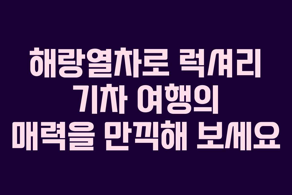 해랑열차는 국내에서 유일한 럭셔리 숙박형 기차 여행 상품으로, 특별한 여행 경험을 제공합니다. 다양한 코스와 객실 옵션을 통해 많은 사람들이 만족할 수 있는 여행을 즐길 수 있습니다. 아래에서 해랑열차의 다양한 정보와 예약 방법을 자세히 살펴보겠습니다.