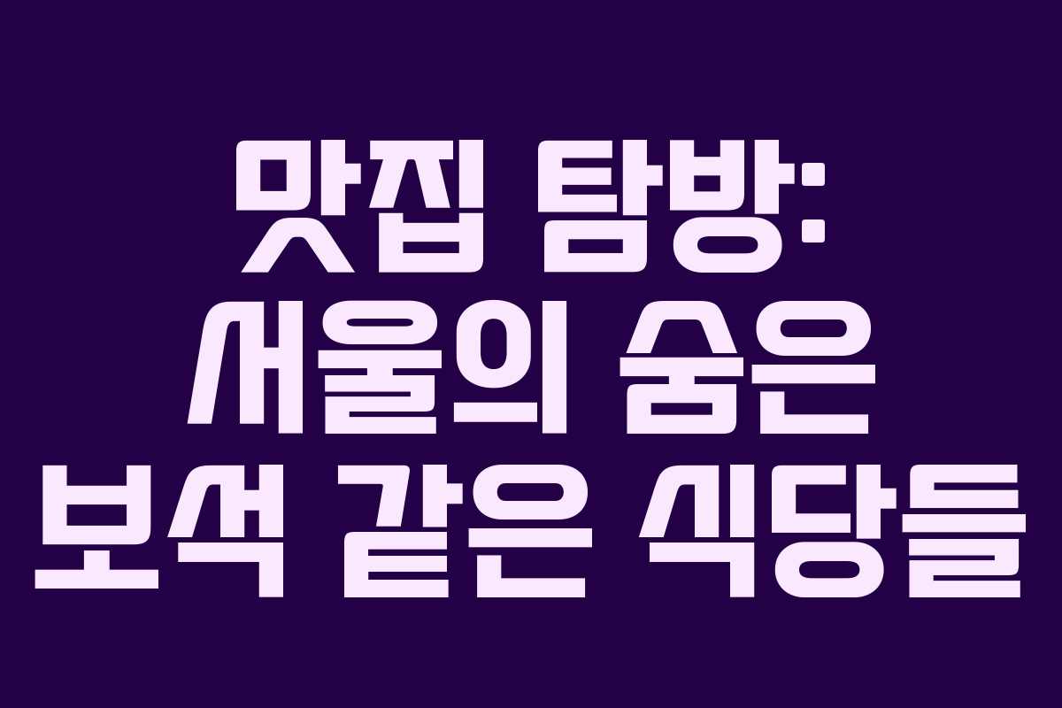 맛집 탐방: 서울의 숨은 보석 같은 식당들