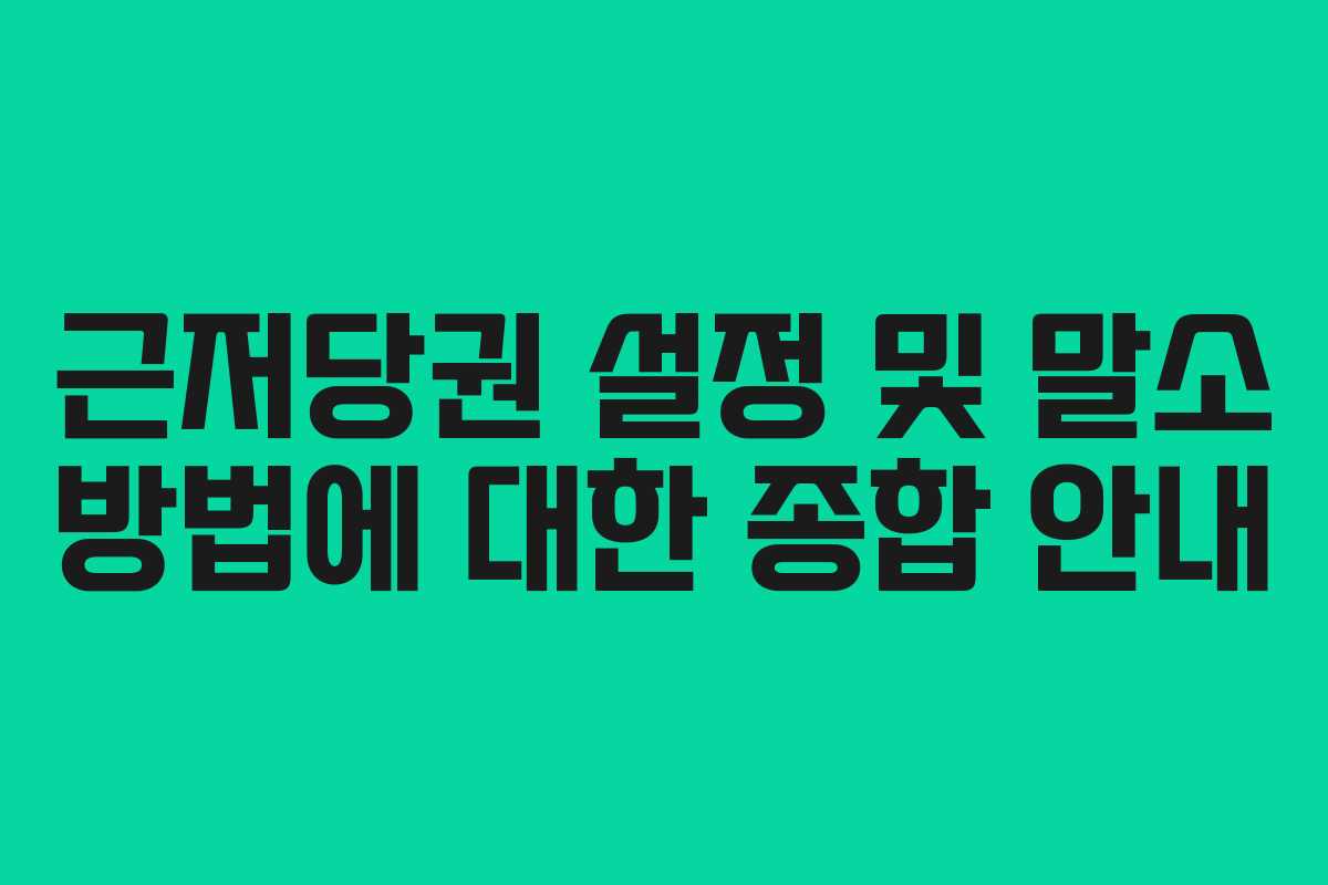 근저당권은 주택이나 아파트와 같은 부동산을 담보로 하여 금융기관으로부터 자금을 대출받을 때 필수적으로 설정됩니다. 이를 통해 채권자는 대출금 상환이 이루어지지 않을 경우 담보물에 대한 권리를 확보하게 되며, 이러한 과정에서 발생하는 여러 가지 사항에 대해 명확히 이해하는 것이 중요합니다. 이번 글에서는 근저당권의 설정 방법과 이를 말소하는 과정에 대해 자세히 알아보겠습니다.