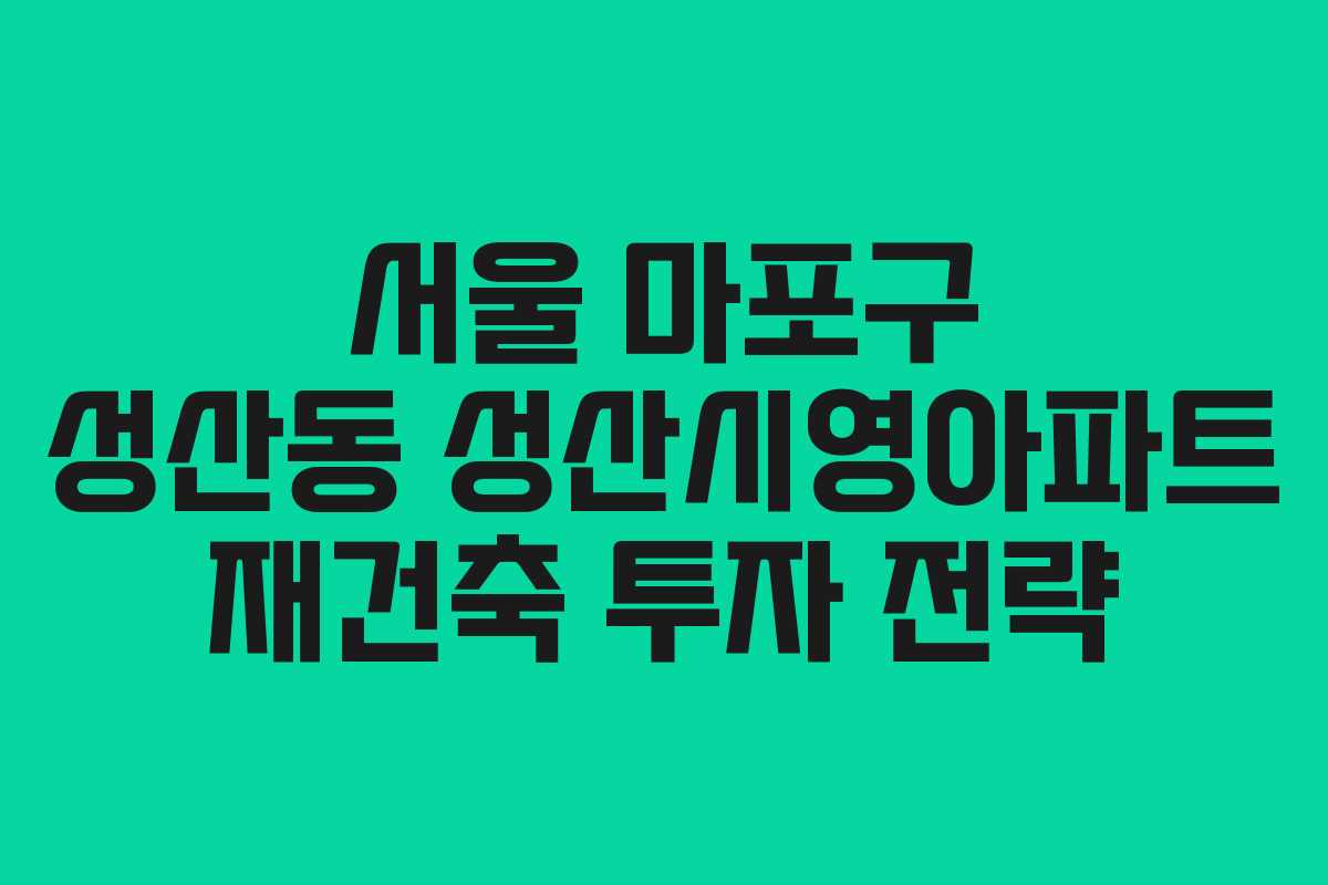 서울 마포구 성산동 성산시영아파트는 재건축 투자에 있어 매우 유망한 선택지입니다. 입지 조건과 시장의 흐름을 고려할 때, 향후 안정적인 수익이 기대됩니다. 투자자는 위에서 언급한 사항들을 충분히 고려하고, 전문가의 조언을 바탕으로 전략을 수립하여 성공적인 투자 결과를 얻기를 바랍니다.