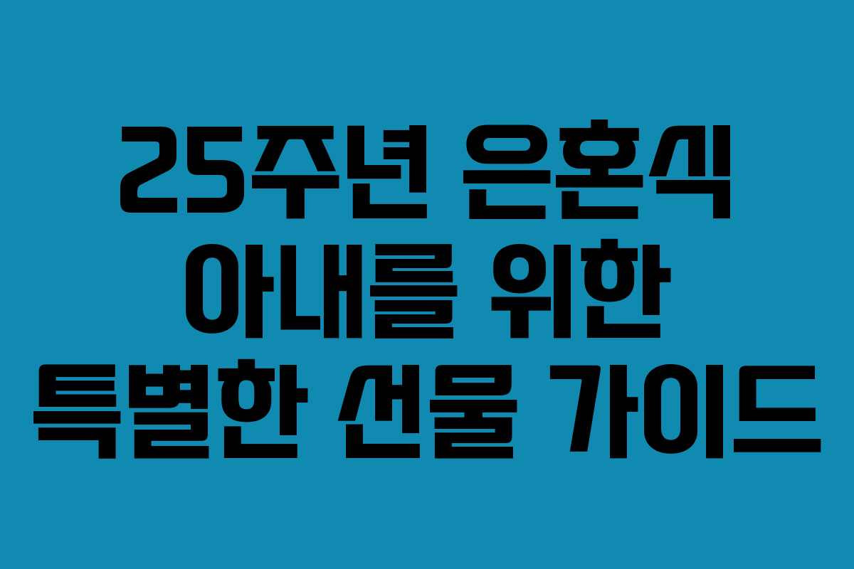 - 25주년 은혼식 선물로 가장 적합한 것은 무엇인가요