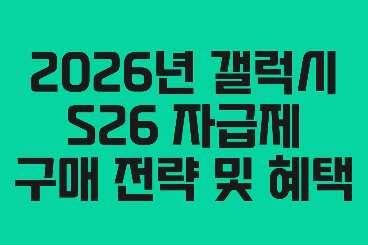 2026년 갤럭시 S26 자급제 구매 전략 및 혜택