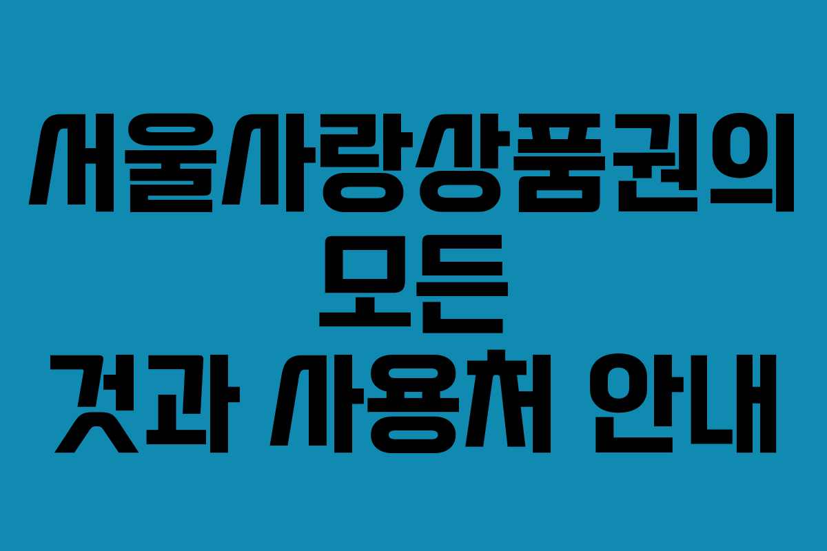 서울사랑상품권의 모든 것과 사용처 안내