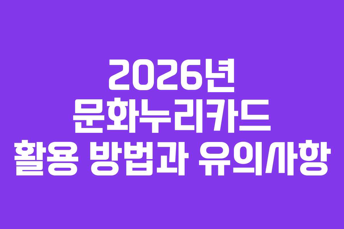 - 2026년 문화누리카드 활용을 위한 실전 가이드