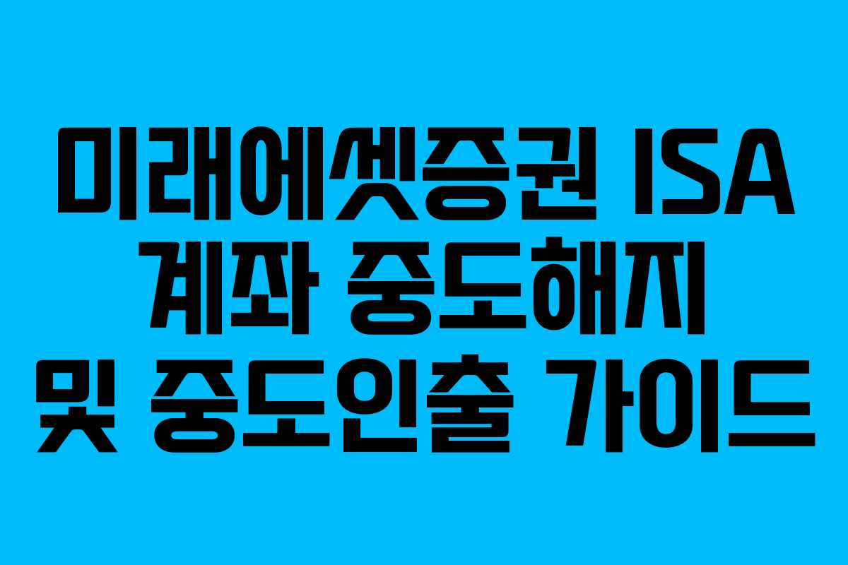 미래에셋증권의 ISA 계좌는 다양한 금융상품을 통합 관리하며 세제 혜택을 제공하는 유용한 상품입니다. 그러나 예기치 않게 자금이 필요할 수도 있어 중도해지 혹은 중도인출을 고려해야 할 상황이 발생할 수 있습니다. 이를 위해서는 정확한 절차와 세금 관련 사항을 이해하는 것이 무엇보다 중요합니다. 이 가이드는 2026년 기준으로 최신 정보를 반영하여 ISA 계좌 중도해지와 중도인출 절차를 상세하게 설명합니다.