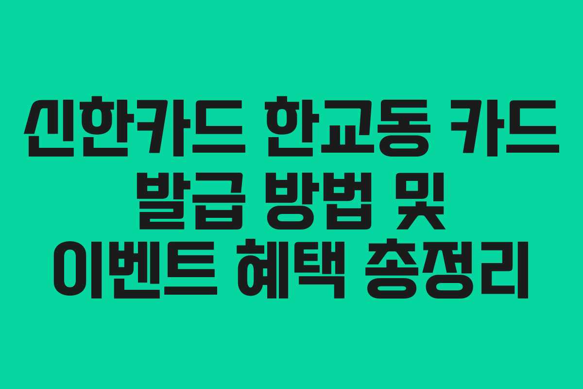 신한카드 한교동 카드 발급 방법 및 이벤트 혜택 총정리