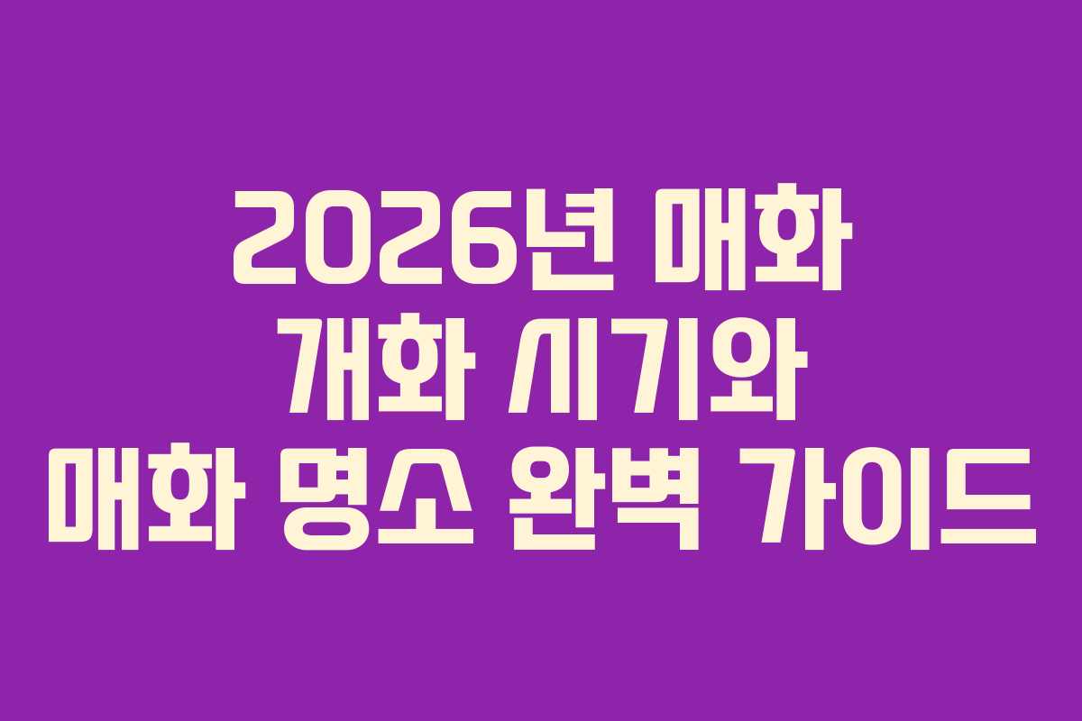 2026년에는 매화가 2월 중순부터 피기 시작하고 3월 초중순에 만개할 것으로 예상됩니다. 지역이나 날씨에 따라 다소 차이가 있을 수 있으니 참고하시기 바랍니다.