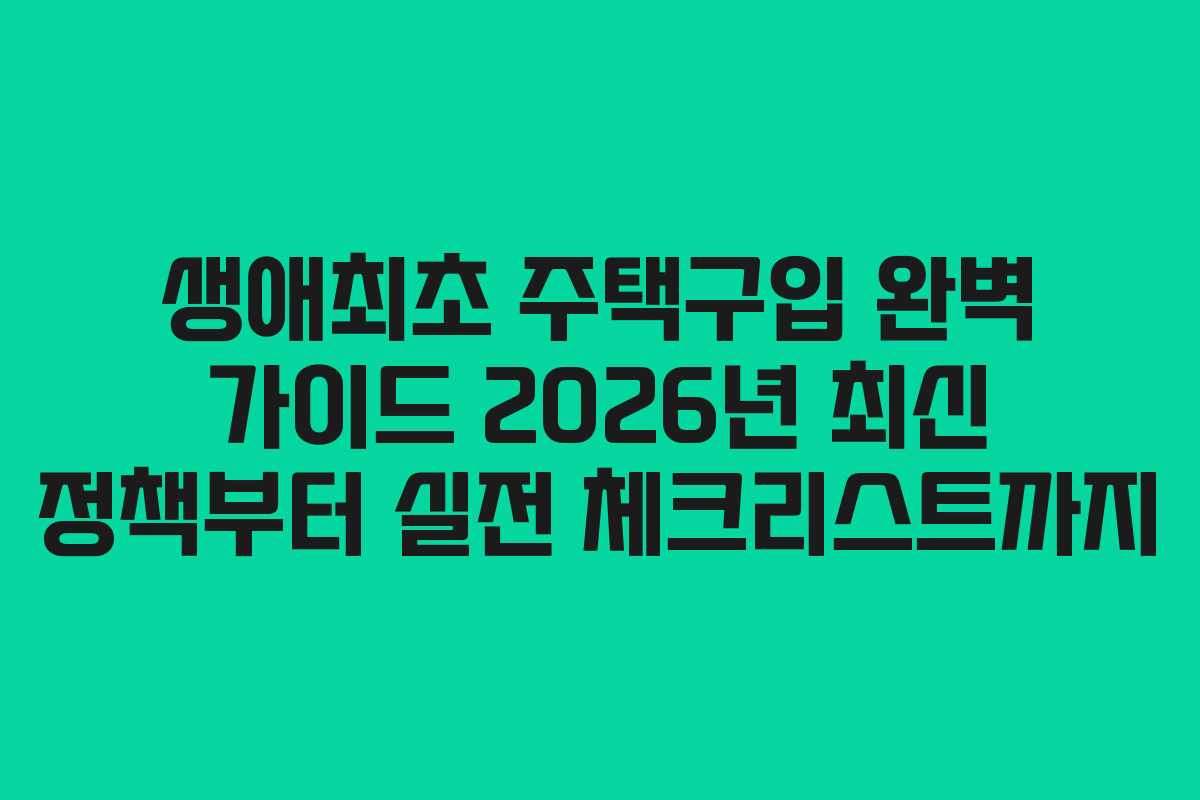 - 2026년 생애최초 주택 구입 절차 및 체크리스트