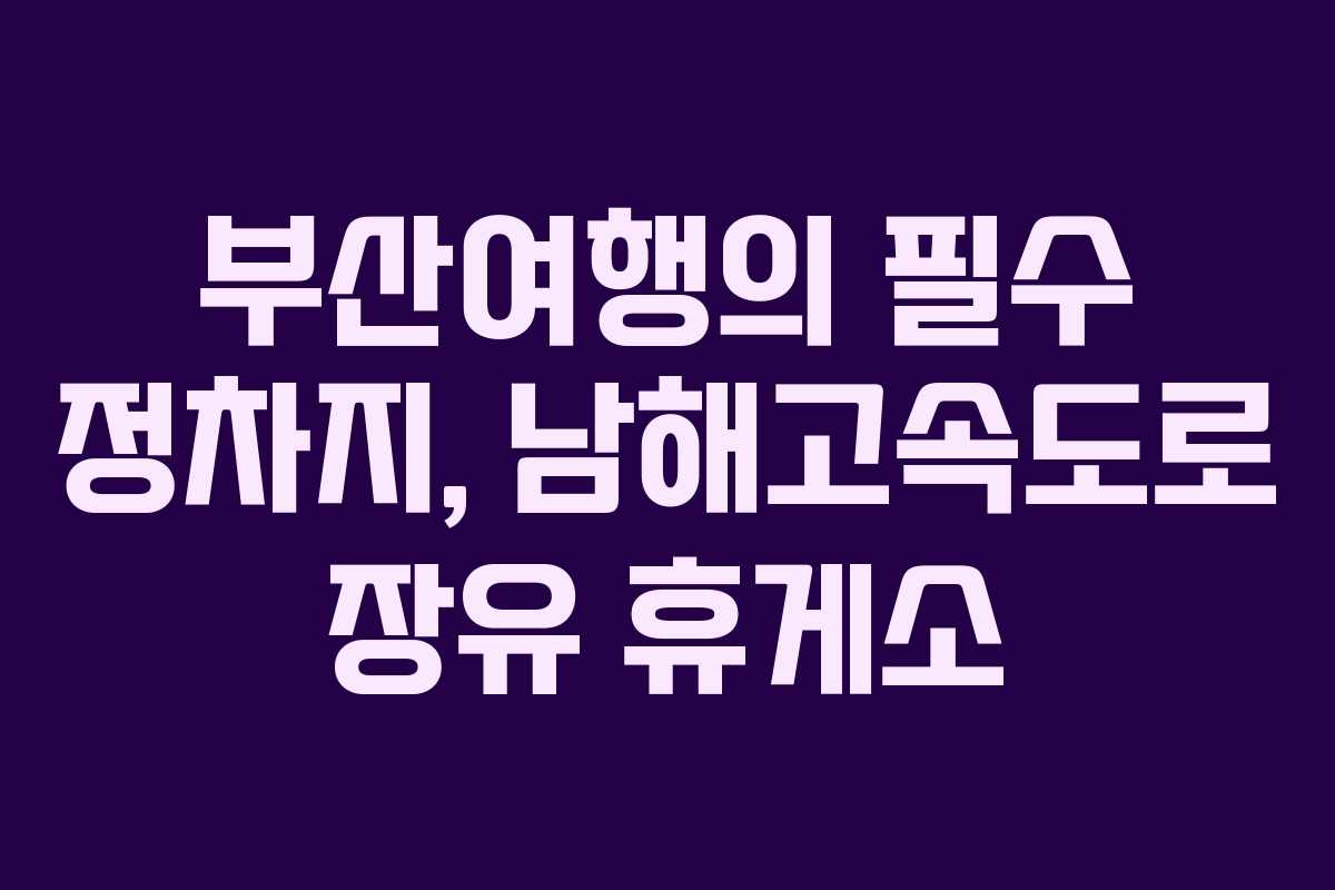 - 부산여행 계획 시 장유 휴게소를 꼭 들러야 하는 이유는 무엇인가요