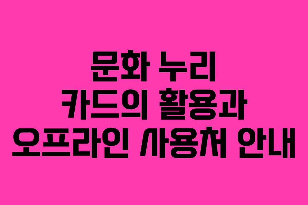 문화 누리 카드의 활용과 오프라인 사용처 안내