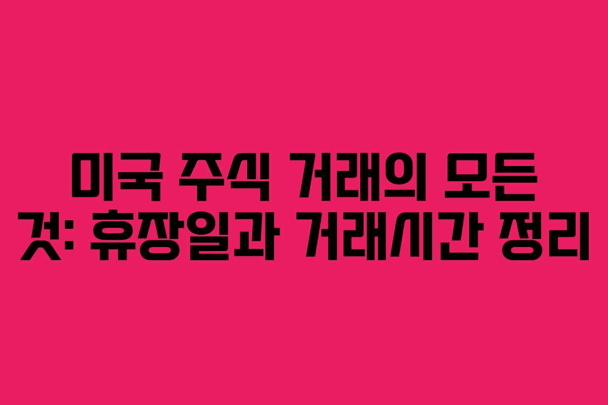 주식 투자를 하는 분들에게 있어 미국 증시의 휴장일과 거래시간을 아는 것은 매우 중요합니다. 특히 한국과 미국의 공휴일이 다르기 때문에, 주식 거래를 하려는 투자자들은 종종 미국 주식의 운영 일정에 혼란을 겪기도 합니다. 따라서 이번 글에서는 2026년을 기준으로 미국 주식의 휴장일과 거래시간에 대해 자세히 알아보도록 하겠습니다.