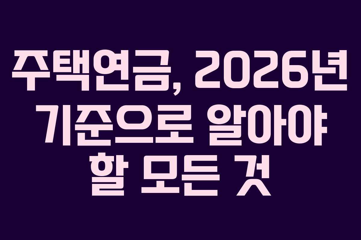 - 주택연금 기본 내용과 2026년 최신 정보