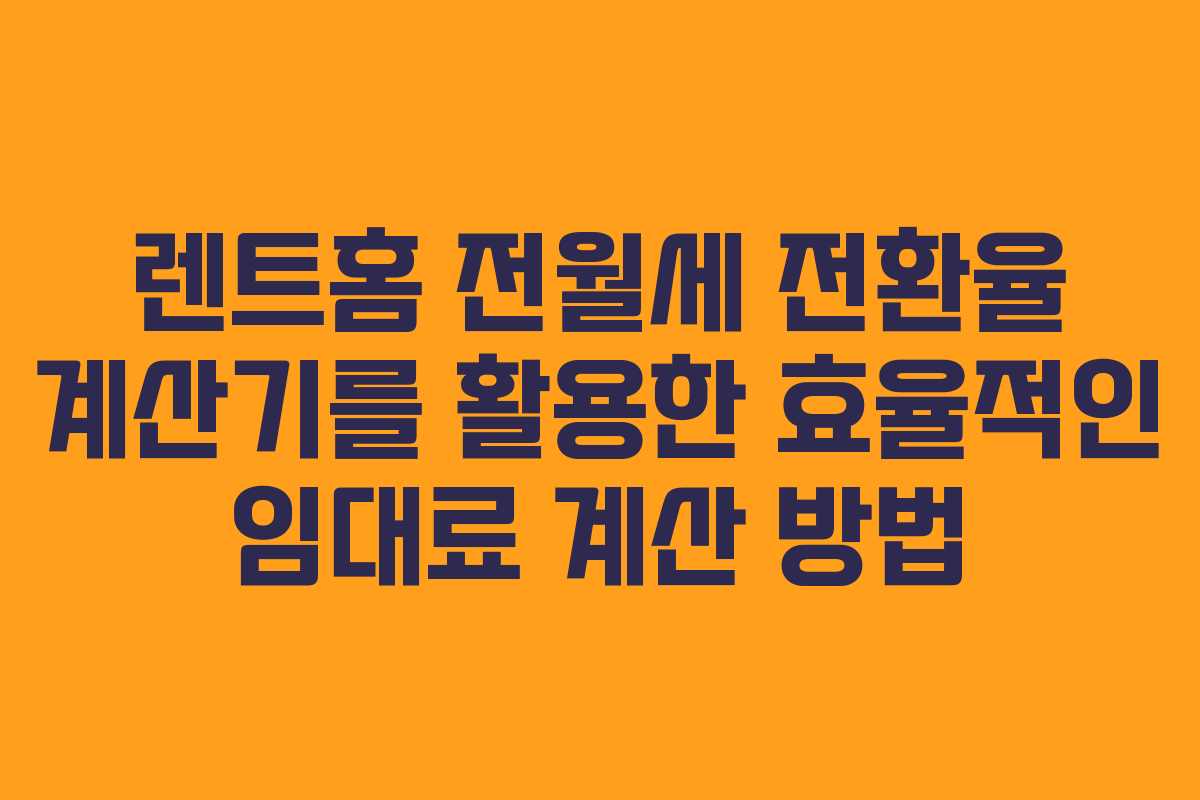 부동산 시장에서 전월세 전환율 계산기는 임차인과 임대인 모두에게 중요한 도구입니다. 특히, 렌트홈의 계산기는 이러한 과정을 보다 간편하게 만들어 줍니다. 본 글에서는 2026년 기준으로 업데이트된 전월세 전환율 정보와 함께 렌트홈 계산기를 효과적으로 활용하는 방법을 소개하겠습니다.