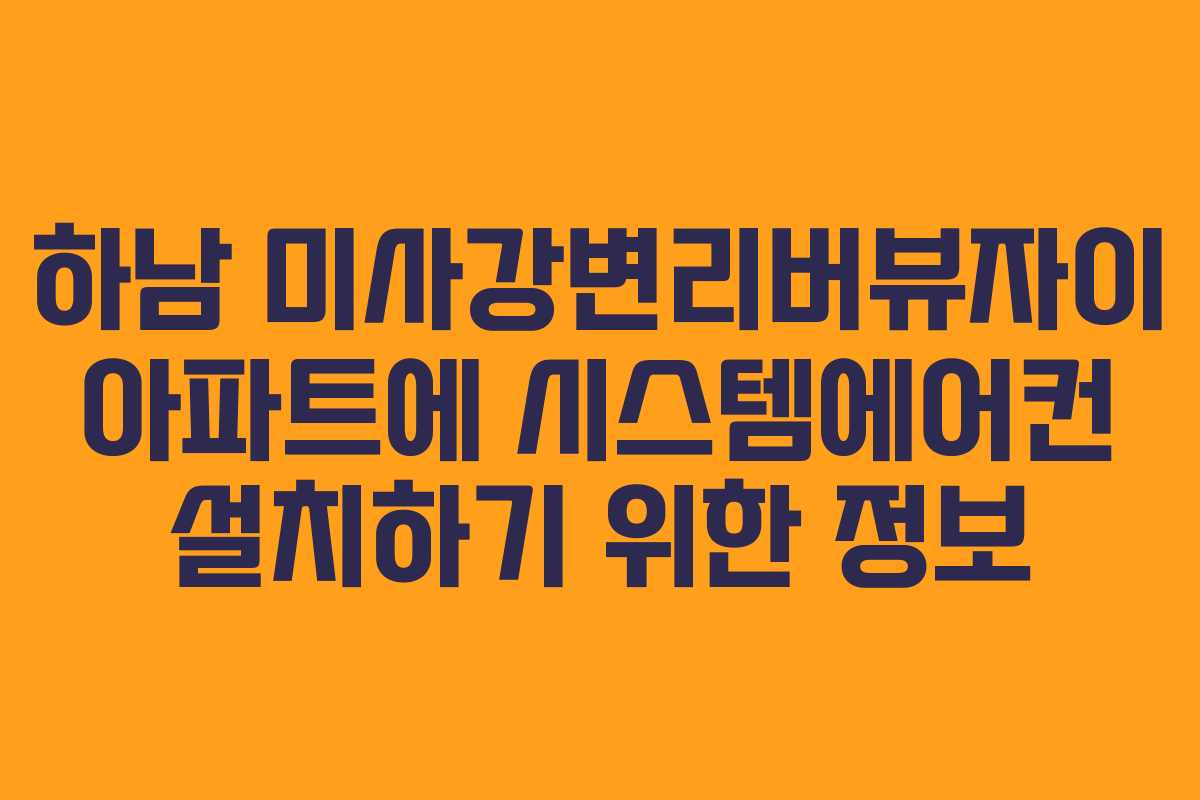 하남시 미사강변리버뷰자이 아파트는 시스템에어컨 설치를 고려하는 많은 분들에게 최적의 선택이 될 수 있습니다. 이 글에서는 시스템에어컨 설치 과정과 주의할 점을 상세히 안내하겠습니다. 시스템에어컨 설치에 대한 정보는 매우 중요하며, 이를 통해 여러분의 선택이 보다 현명해질 것입니다.