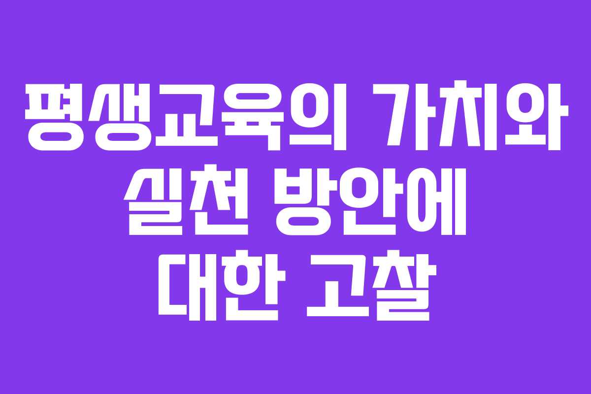 평생교육을 효과적으로 실천하기 위한 몇 가지 전략을 제시하겠다.