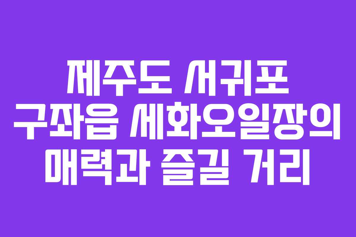 제주도 서귀포 구좌읍에 위치한 세화오일장은 지역 주민들뿐만 아니라 관광객들에게도 사랑받는 전통시장이다. 세화민속오일시장은 장날이 정해져 있어 매달 5일과 10일에 활기를 띠며, 이곳은 과거의 전통을 간직한 채 현재에도 많은 이들에게 소중한 장소로 자리 잡고 있다.