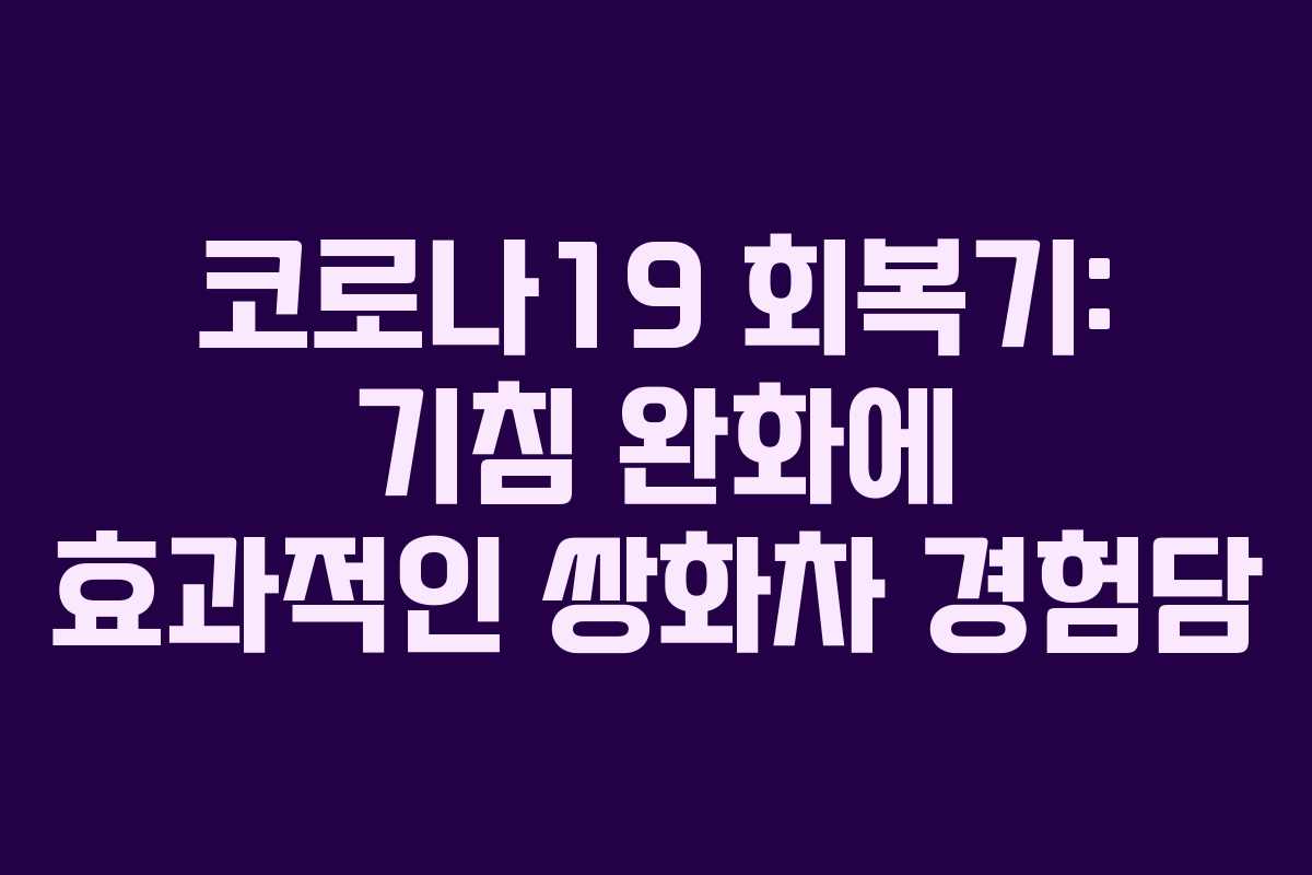 이번 코로나19 경험은 저에게 많은 것을 가르쳐주었습니다. 기침 완화에 대해 여러 방법을 시도해보았고, 그 중 쌍화차가 저에게 가장 효과적이었습니다. 앞으로도 증상에 맞는 제품을 찾아보며 건강관리에 힘쓰겠습니다. 기침이 심하신 분들은 저의 경험을 참고하여 쌍화차를 시도해보시길 바랍니다. 건강이 회복되길 기원합니다.