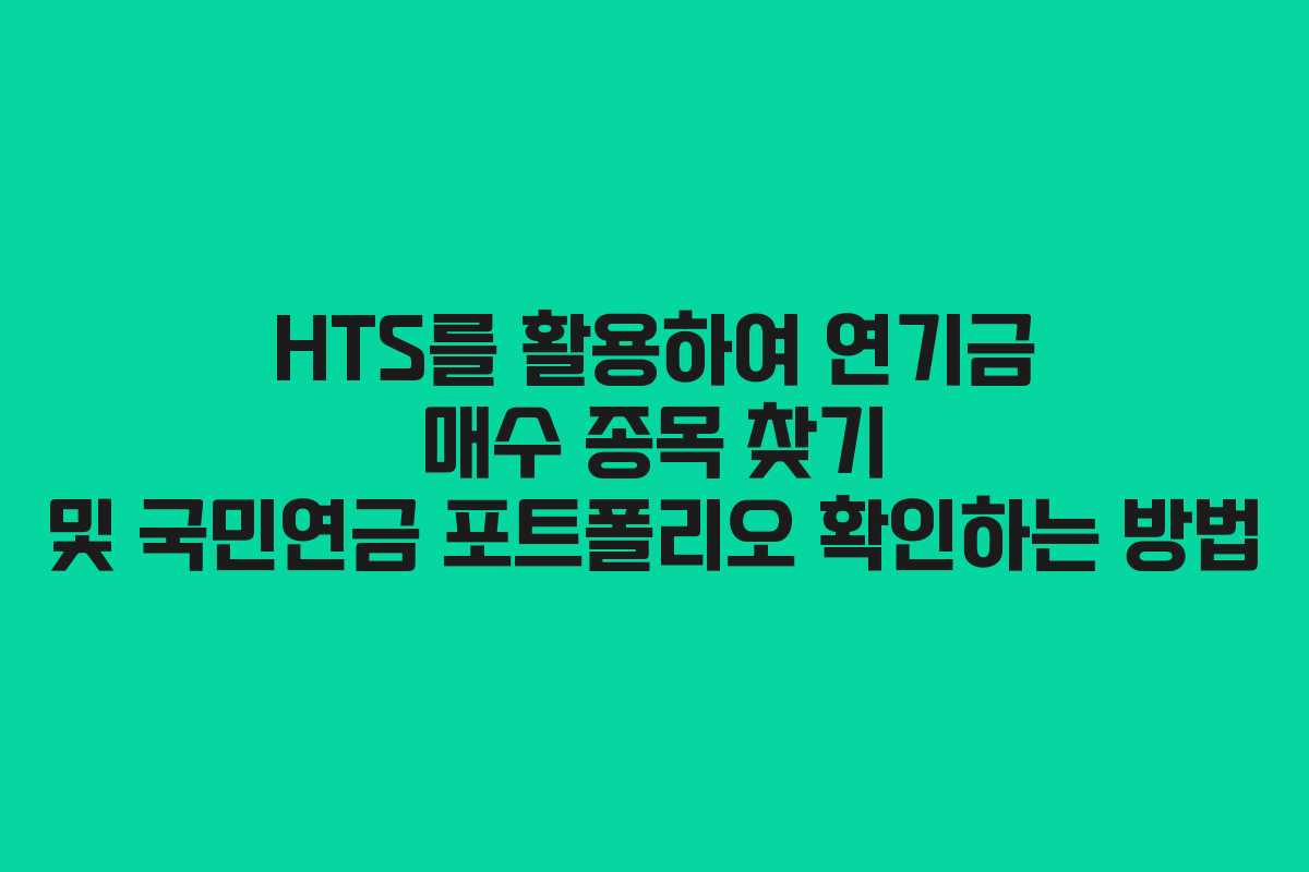 오늘날 주식 시장은 코로나19와 관련된 이슈로 인해 급변하고 있으며, 이러한 변화 속에서 연기금의 매수 패턴이 주식 가격에 미치는 영향이 점점 더 부각되고 있습니다. 특히, 연기금이 연속으로 순매수를 기록하는 종목은 가격 상승을 동반하는 경우가 많아 이러한 정보를 활용하는 것이 매우 중요합니다. 본문에서는 HTS를 이용하여 연기금의 매수 종목을 찾고, 국민연금의 포트폴리오를 확인하는 방법을 살펴보겠습니다.
