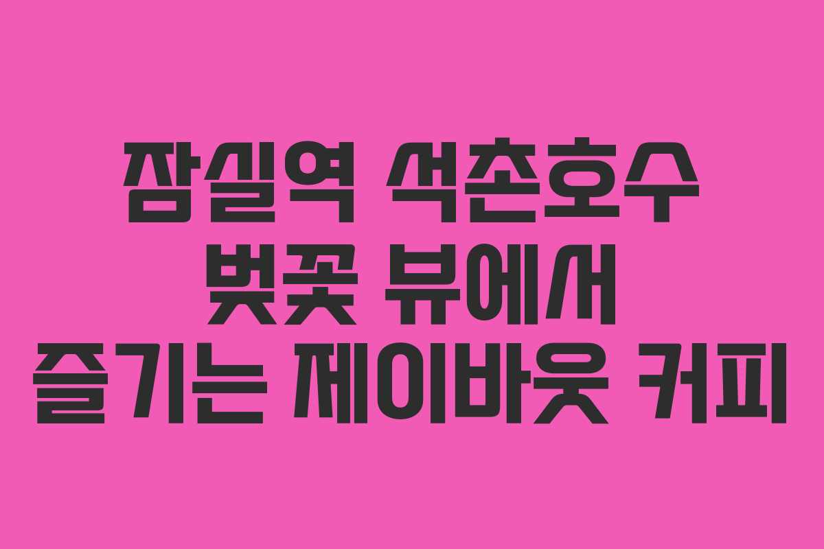 봄이 오면 늘 기다려지는 것이 벚꽃이다. 특히 서울의 벚꽃 명소 중 하나인 석촌호수는 아름다운 경관과 함께 카페들이 즐비해 있어 방문객들에게 특별한 경험을 선사한다. 이번에는 그 중에서도 눈에 띄는 카페인 제이바웃 커피를 소개하겠다. 이곳은 석촌호수 바로 앞에 위치해 있어 벚꽃 시즌에 더욱 매력적으로 다가온다.