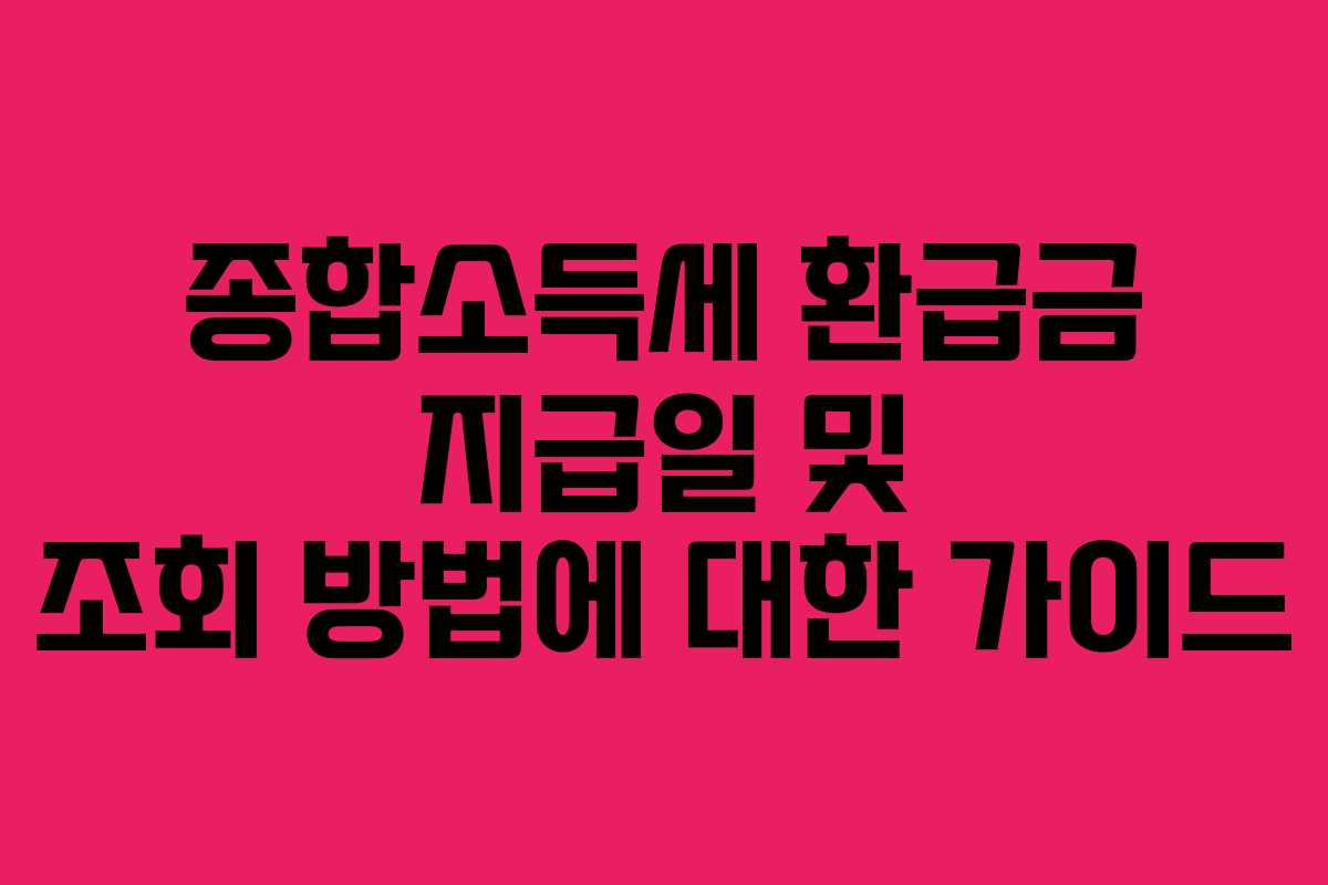 종합소득세 환급금 지급일 및 조회 방법에 대한 가이드