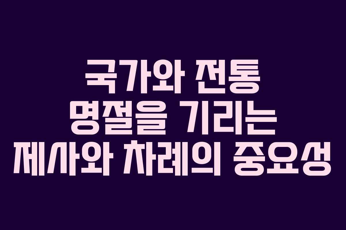 국가의 제사와 차례는 조상을 기리며 전통을 이어가는 중요한 문화적 의식입니다. 이는 가족의 유대감을 강화하고, 후세에 전통을 전달하는 역할을 합니다.