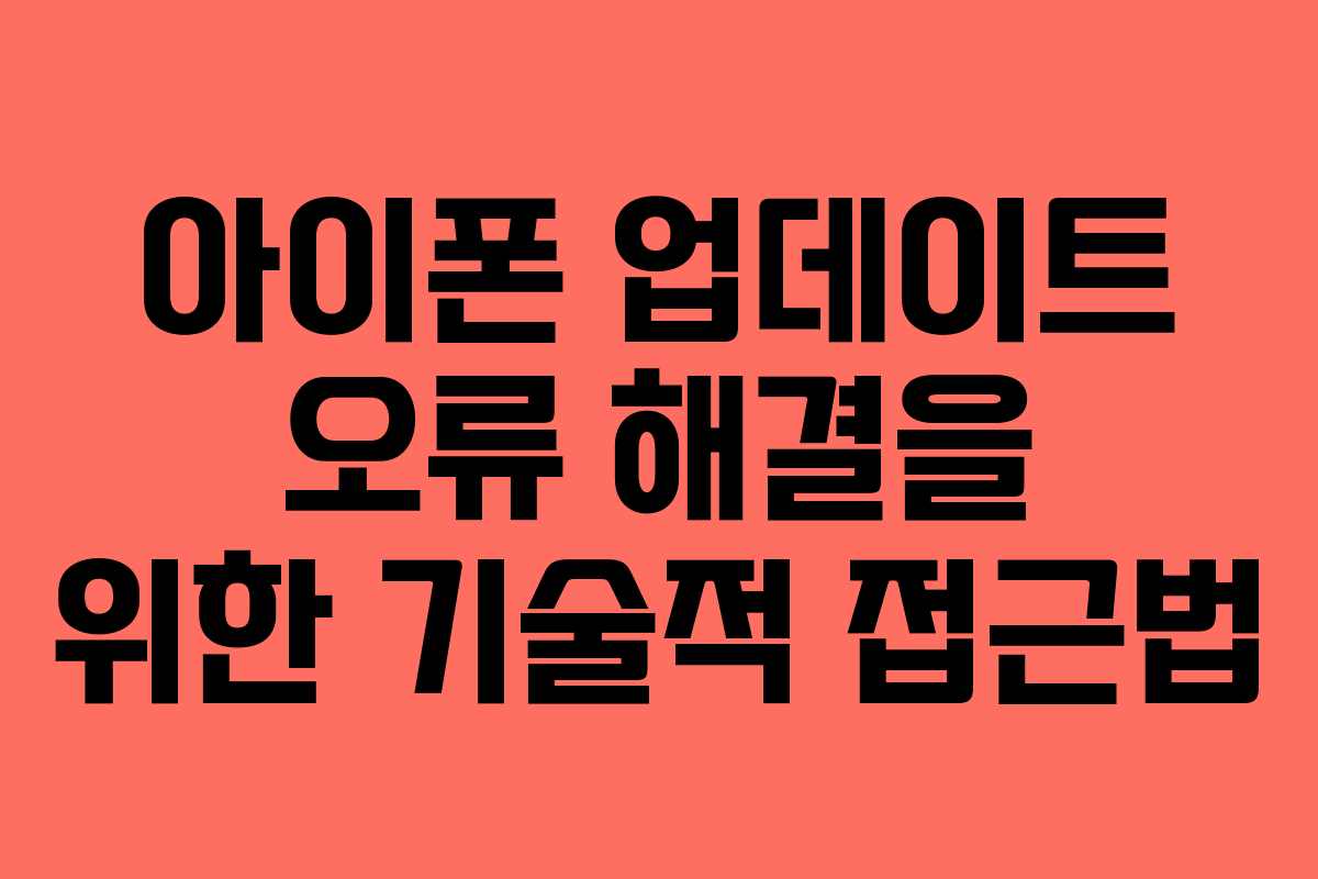 아이폰 사용자라면 업데이트 과정에서 오류를 겪는 일이 종종 있습니다. 저 역시 과거에 아이폰 13을 업데이트하려다가 오류 메시지를 보며 당황했던 기억이 있습니다. 이 글에서는 아이폰 업데이트 오류를 해결하기 위한 다양한 기술적 접근법을 소개하고자 합니다. 실질적인 해결책을 제공하여 여러분의 문제 해결에 도움이 되기를 바랍니다.