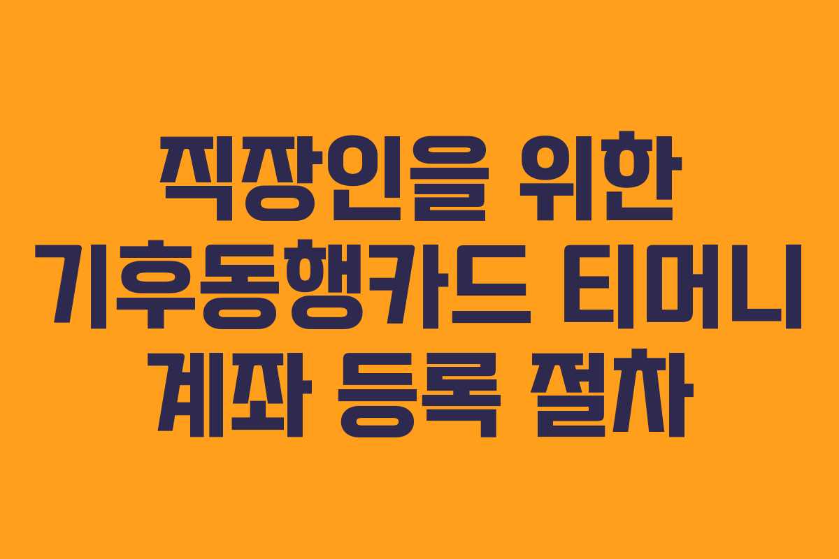 기후동행카드를 사용하기 위해서는 티머니 계좌 등록이 필수적입니다. 등록은 간단하지만, 몇 가지 단계가 필요합니다. 아래의 절차를 따르면 여러분도 쉽게 등록할 수 있습니다.