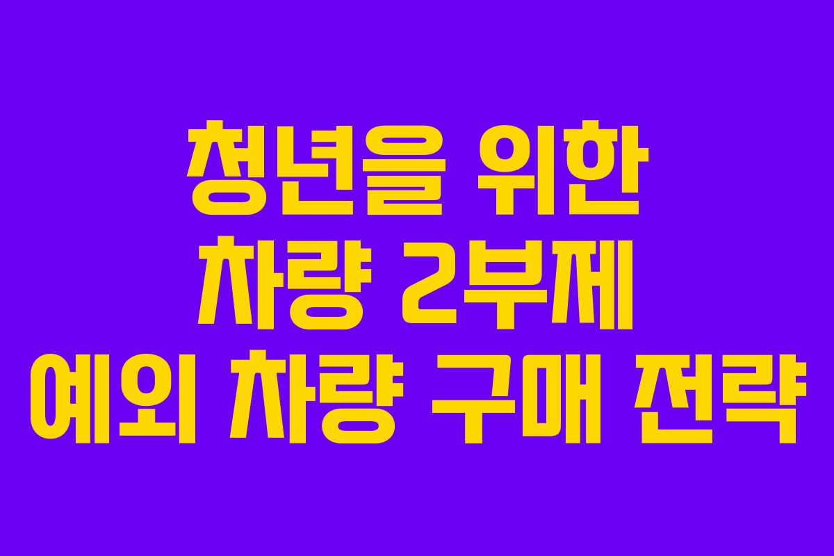 차량 2부제는 대도시에서 교통량을 줄이고, 대기 오염을 감소시키기 위한 정책입니다. 하지만 이로 인해 청년들이 차량 구매를 꺼리는 경우도 많습니다. 예를 들어, 친구 중 한 명은 차량을 구매하고 싶었지만 2부제로 인해 차량 이용이 제한될까 걱정했습니다. 이때, 예외 차량에 대한 정보를 알고 접근한다면 더 좋은 선택을 할 수 있습니다.