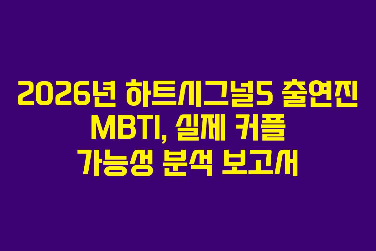 2026년, 하트시그널5는 새로운 연애 리얼리티 프로그램으로 많은 이들의 관심을 끌고 있습니다. 프로그램의 첫 방송이 다가오면서, 출연진의 비주얼과 성격, 그리고 그들의 MBTI 성격 유형까지 다양한 이야기가 퍼지고 있습니다. 특히 강유경이라는 인물의 존재가 주목받고 있으며, 그녀의 매력은 시청자들을 사로잡는 데 큰 역할을 하고 있습니다. 이번 글에서는 하트시그널5의 방송 정보와 출연진, 그리고 그들의 MBTI 성격 유형을 통해 실제 커플 가능성까지 분석해보려 합니다.